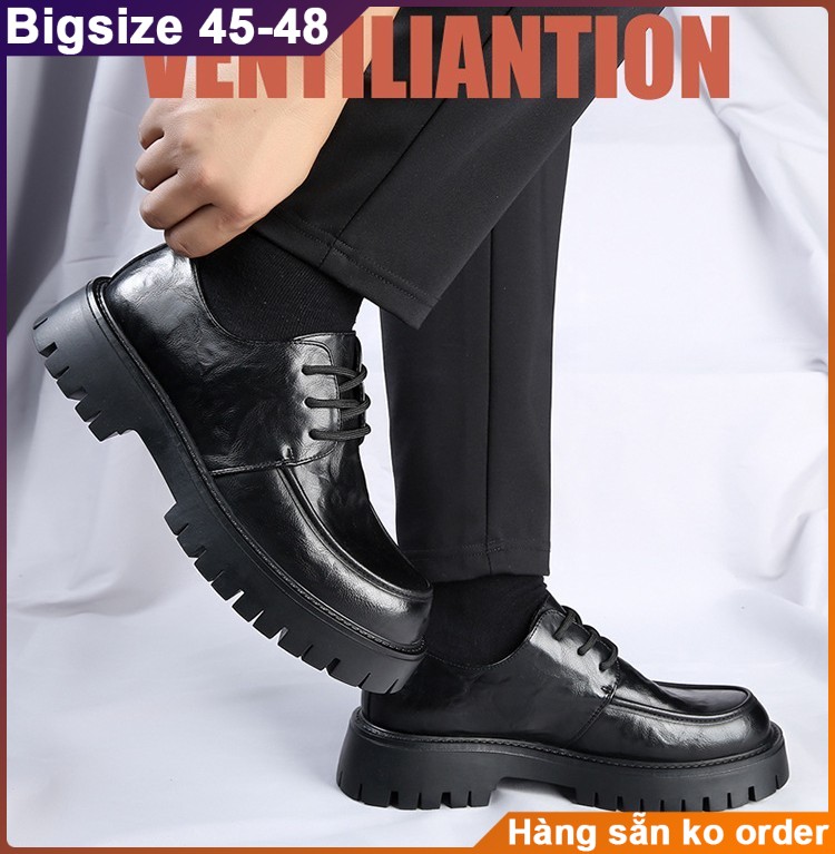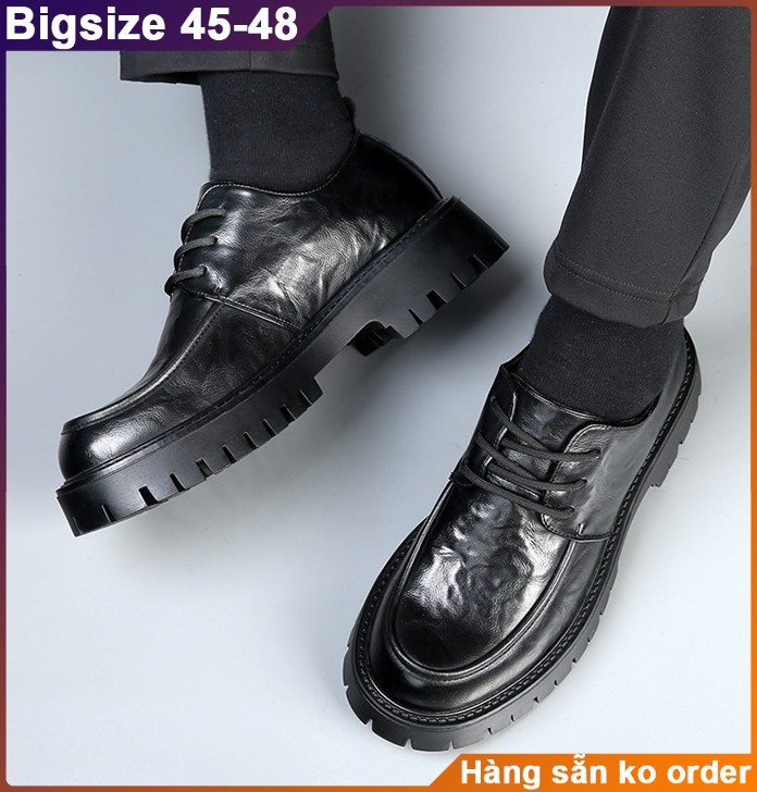 Giày tây tăng chiều cao big size cỡ lớn cho nam chân ú bè 29-30cm. Large size chunky derby shoes 46 47 eu for fat feet.